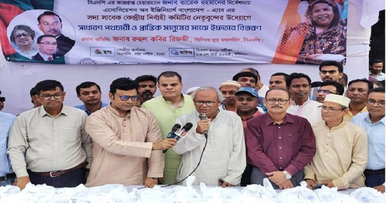রোববার (২৩ মার্চ) নয়াপল্টন বিএনপির কেন্দ্রীয় কার্যালয়ের সামনে অ্যাসোসিয়েশন অব ইঞ্জিনিয়ার্স বাংলাদেশ- এ্যাব এর সদ্য সাবেক কেন্দ্রীয় নির্বাহী কমিটির নেতাদের উদ্যোগে বিএনপির ভারপ্রাপ্ত চেয়ারম্যান তারেক রহমানের নির্দেশনায় সাধারণ পথচারী ও প্রান্তিক মানুষের মাঝে ইফতার বিতরণকালে তিনি প্রধান অতিথির বক্তব্যে এসব কথা বলেন।