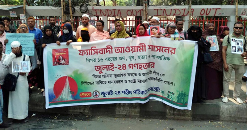 শহীদ পরিবারের সদস্যরা বলেন, কোনোভাবে আওয়ামী লীগকে রাজনীতিতে রাখা যাবে না। কোনো দল বা গোষ্ঠী যদি আঁতাত করার মাধ্যমে ওই দলকে ফেরাতে চায় তবে তারা দেশের শত্রু।