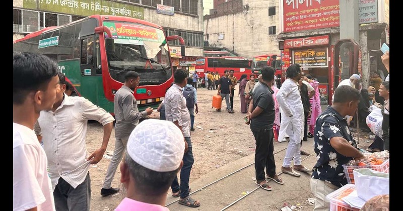 মঙ্গলবার (১ এপ্রিল) বিকেলে রাজধানীর ফুলবাড়িয়া ও ফকিরাপুল বাস টার্মিনাল ঘুরে ঘরমুখো মানুষের চাপ দেখা গেছে।