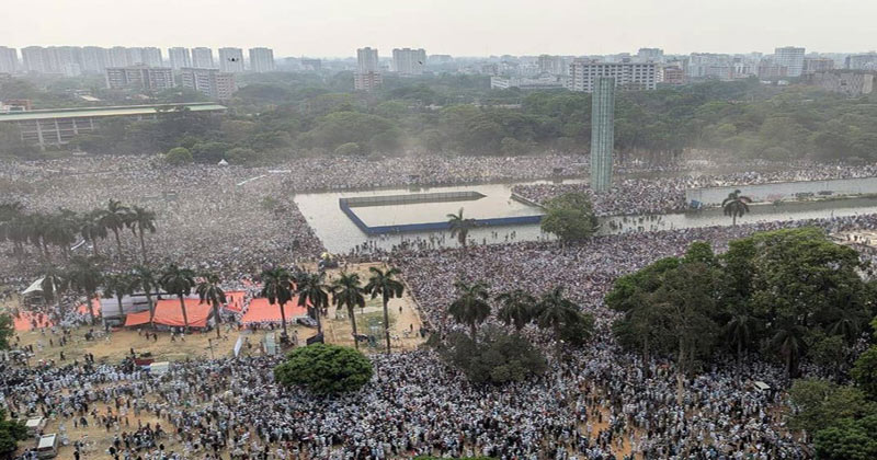 ফিলিস্তিনে চলমান গণহত্যার প্রতিবাদে লাখো জনতার ঢল নেমেছে রাজধানীর সোহরাওয়ার্দী উদ্যানে। মার্চ ফর গাজা নামের এই কর্মসূচিতে আসা সবার কণ্ঠে ‘ফ্রি ফ্রি প্যালেস্টাইন’ স্লোগানে আজ (শনিবার) সকাল থেকে প্রকম্পিত রাজধানী ঢাকা।সবার মুখে গণহত্যা বন্ধ এবং স্বাধীন রাষ্ট্র হিসেবে ফিলিস্তিন প্রতিষ্ঠার আকাঙ্ক্ষা। অনেকের হাতে থাকা প্ল্যাকার্ডে ‘ফিলিস্তিন মুক্ত করো; গাজা রক্তে রঞ্জিত, বিশ্ব কেন নীরব’— এমন লেখা দেখা গেছে।
