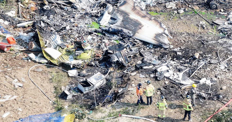 ছবিতে দেখা যায়, ঘটনাস্থলের আশপাশে ফায়ার সার্ভিসের কর্মী ও জরুরি যানবাহন মোতায়েন রয়েছে। এ সময় সেখানে কালো ধোঁয়া উড়তে দেখা যায় এবং ফায়ার সার্ভিসের কর্মীরা বিমানের ধ্বংসাবশেষে পানি ছিটিয়ে আগুন নিয়ন্ত্রণের চেষ্টা করছেন।