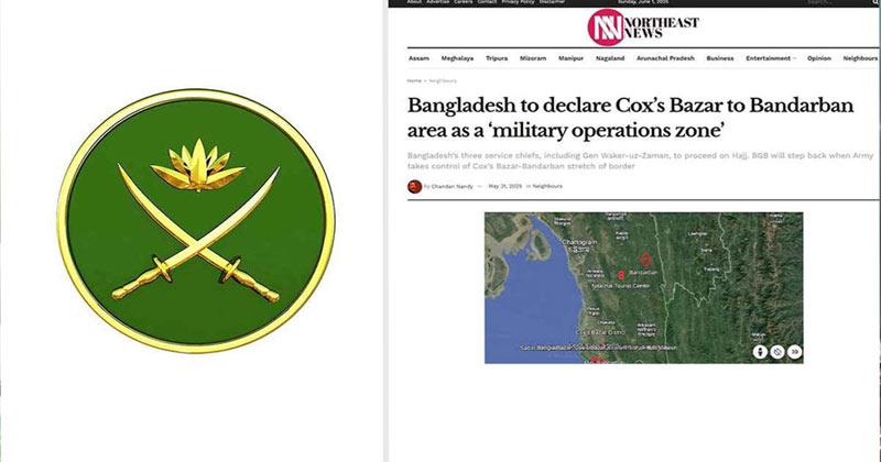 এতে বলা হয়, ভারতীয় গণমাধ্যম Northeast News কর্তৃক প্রকাশিত ‘Bangladesh to declare Cox’s Bazar to Bandarban area as a Military Operations Zone’ শীর্ষক প্রতিবেদনটি সম্পূর্ণ মিথ্যা, ভিত্তিহীন এবং উদ্দেশ্যপ্রণোদিত। এই ধরনের সংবাদ ভারতীয় কিছু গণমাধ্যমের পরিকল্পিত অপচেষ্টার অংশ, যার উদ্দেশ্য বাংলাদেশের অভ্যন্তরীণ স্থিতিশীলতা বিনষ্ট করা এবং সশস্ত্র বাহিনীর ভাবমূর্তিকে ক্ষুণ্ণ করা।