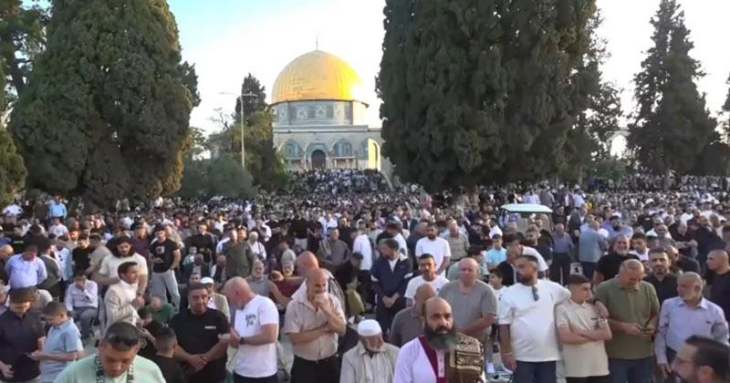 শুক্রবার (৬ জুন) সকালে স্থানীয় সময় মুসল্লিরা আল-আকসা মসজিদে সমবেত হন এবং সুশৃঙ্খলভাবে ঈদের নামাজ আদায় করেন।