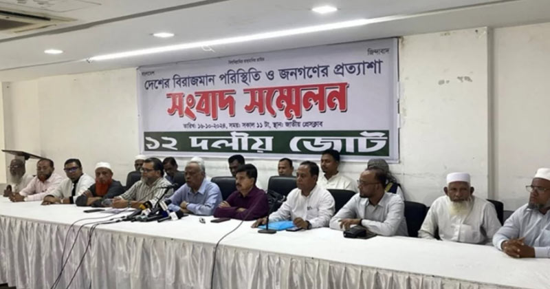 বিবৃতিতে স্বাক্ষর করেন ১২ দলীয় জোট প্রধান ও জাতীয় পার্টির চেয়ারম্যান মোস্তফা জামাল হায়দার, জোটের মুখপাত্র বাংলাদেশ এলডিপির চেয়ারম্যান শাহাদাত হোসেন সেলিম, জোটের সমন্বয়ক বাংলাদেশ জাতীয় দলের চেয়ারম্যান সৈয়দ এহসানুল হুদা, জমিয়তে উলামায়ে ইসলাম বাংলাদেশের মহাসচিব ডক্টর গোলাম মহিউদ্দিন ইকরাম, জাতীয় গণতান্ত্রিক পার্টি (জাগপার) সহ-সভাপতি রাশেদ প্রধান, লেবার পার্টি বাংলাদেশের চেয়ারম্যান লায়ন ফারুক রহমান, কল্যাণ পার্টি চেয়ারম্যান শামসুদ্দীন পারভেজ, ইসলামী ঐক্যজোটের চেয়ারম্যান মাওলানা আব্দুর রকিব, ইসলামিক পার্টির মহাসচিব আবুল কাশেম, নয়া গণতান্ত্রিক পার্টির সভাপতি এম এ মান্নান, প্রগতিশীল জাতীয়তাবাদী দল (পিএনপির) চেয়ারম্যান ফিরোজ মো. লিটন।