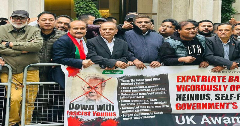 লন্ডনে ড. ইউনুস,হোটেলের সামনে যুক্তরাজ্য আ. লীগের বিক্ষোভ