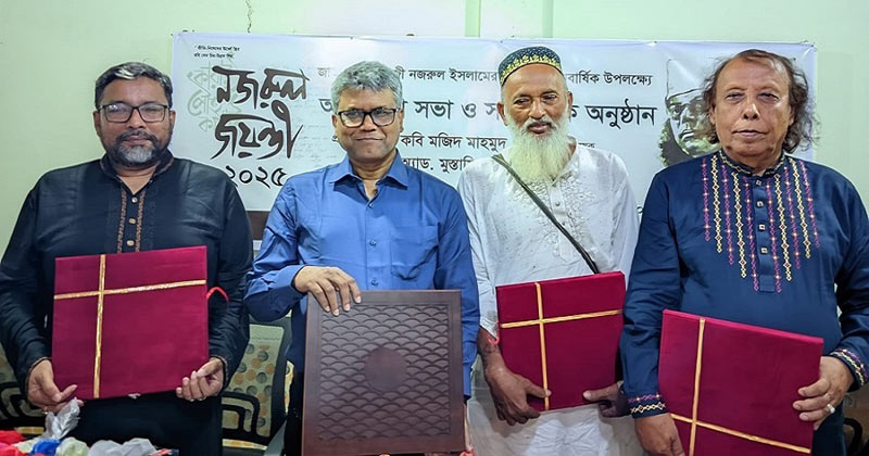 এর আগে নজরুলের জীবনী নিয়ে অনুষ্ঠিত রচনা প্রতিযোগিতায় বিজয়ীদের মধ্যে পুরস্কার বিতরণ করা হয়। পুরস্কার তুলে দেন অনুষ্ঠানের প্রধান অতিথি কবি মজিদ মাহমুদ।