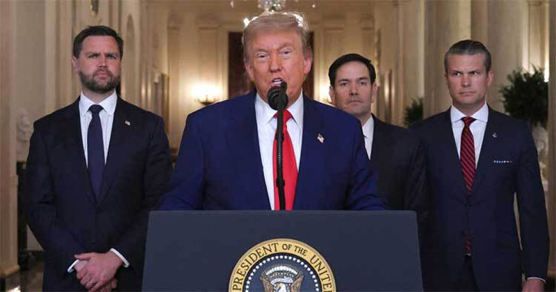 স্থানীয় সময় শনিবার (২১ জুন) রাতে জাতির উদ্দেশে দেওয়া ভাষণে প্রেসিডেন্ট ট্রাম্প বলেন, যুক্তরাষ্ট্রের বিমান হামলায় ইরানের পারমাণবিক সমৃদ্ধকরণ স্থাপনা ‘সম্পূর্ণ এবং পুরোপুরি ধ্বংস’ হয়ে গেছে। তিনি হুমকি দিয়েছেন যে, তেহরান যদি শান্তি স্থাপন না করে তবে আরও হামলা চালানো হবে।