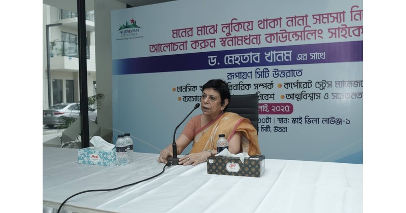 দেশের প্রথম প্রিমিয়াম মেগা গেইটেড কমিউনিটি রূপায়ণ সিটি উত্তরায় শনিবার (১৯ জুলাই) অনুষ্ঠিত হয়েছে বিশেষ সচেতনতামূলক সেশন, যেখানে মানসিক স্বাস্থ্য, পারিবারিক সম্পর্ক, কর্পোরেট স্ট্রেস ম্যানেজমেন্ট, আত্মবিশ্বাস এবং ব্যক্তিগত ও পেশাগত জীবনে মনোযোগ ধরে রাখার বিভিন্ন দিক নিয়ে আলোচনা করা হয়।