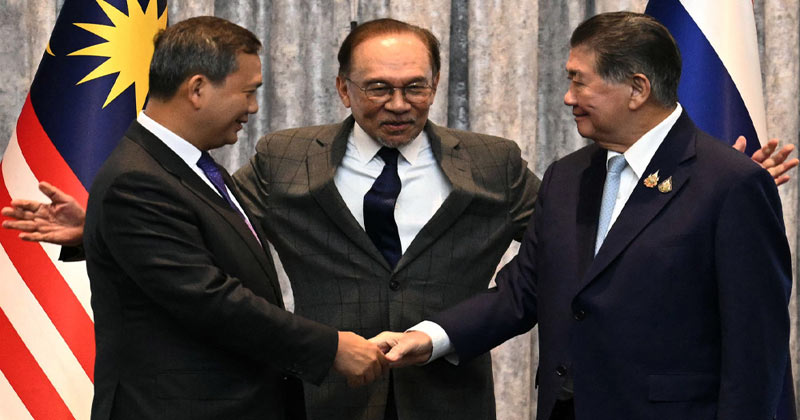 থাইল্যান্ডের ভারপ্রাপ্ত প্রধানমন্ত্রী ফুমথাম ওয়েচায়াচাই ও কম্বোডিয়ার প্রধানমন্ত্রী হুন মানেত বৈঠকে আনোয়ার ইব্রাহিমের উপস্থিতিতে গ্রিনিচ মান সময় সকাল ৭টার কিছু পর সাক্ষাৎ করেন।