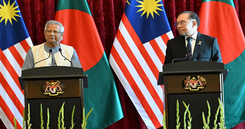 অধ্যাপক ইউনূস আজ মঙ্গলবার কুয়ালালামপুরে বাংলাদেশ ও মালয়েশিয়ার মধ্যে বাণিজ্য এবং বিনিয়োগ সুযোগ নিয়ে আয়োজিত এক ব্যবসায়িক ফোরামে এসব কথা বলেন। তিনি বিনিয়োগকারীদের বিশ্বজুড়ে বসবাসরত তরুণ বাংলাদেশি প্রবাসীদের সম্ভাবনা কাজে লাগানোর আহ্বান জানান।