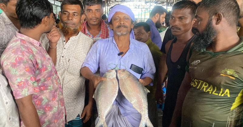 জানা যায়, লক্ষ্মীপুরের রামগতির জেলে মো. বাহার উদ্দিন মেঘনা নদীতে ভোরে রাতে জাল ফেলেন। কয়েক ঘণ্টা পর সেই জাল তুলে আনেন। এ সময় বেশ কিছু ছোট ও মাঝারি ইলিশের সঙ্গে বড় আকারের দুটি রানি ইলিশ ধরা পড়ে। পরে মাছ দুটির দাম ভালো পেতে তিনি চেয়ারম্যান ঘাটের মাছ বাজারে নিয়ে আসেন।