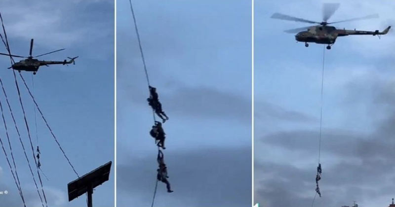 আরেকটি ভিডিওতে দেখা যায়, সেনাবাহিনীর হেলিকপ্টার দিয়ে মন্ত্রী ও তাদের পরিবারকে উদ্ধার করা হচ্ছে। উদ্ধার ঝুলিতে ঝুলে থাকা অবস্থায় তাদের উড়তে দেখা যায় কাঠমান্ডুর একটি হোটেলের ওপর দিয়ে। একই সময়ে শহরের বিভিন্ন এলাকায় ধোঁয়ার কুণ্ডলী উঠতে থাকে।