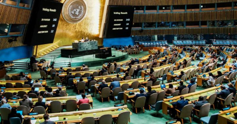 জাতিসংঘ সাধারণ পরিষদে ইসরায়েল-ফিলিস্তিন সংকটের শান্তিপূর্ণ সমাধানের লক্ষ্যে শুক্রবার একটি ঐতিহাসিক প্রস্তাব বিপুল সমর্থনে গৃহীত হয়েছে। বাংলাদেশসহ ১৪২টি দেশ এই প্রস্তাবের পক্ষে ভোট দিয়েছে। মাত্র ১০টি দেশ বিরোধিতা করেছে, আর ১২টি দেশ ভোট দেওয়া থেকে বিরত ছিল।