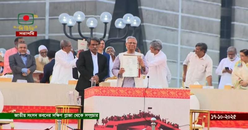 আজ শুক্রবার বিকাল ৫টায় জুলাই জাতীয় সনদ ২০২৫–এ স্বাক্ষর করেন তারা। এর আগে বিকাল চারটা ৩৭ মিনিটে জাতীয় সংগীতে শুরু হয় জুলাই জাতীয় সনদ স্বাক্ষর অনুষ্ঠান।