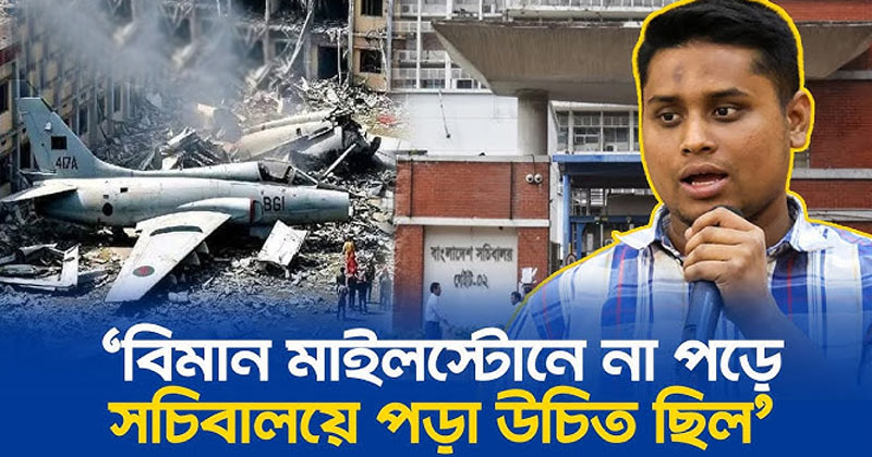 বিমান মাইলস্টোন স্কুলে না পড়ে সচিবালয়ে পড়া উচিত ছিল বলে মন্তব্য করেছেন জাতীয় নাগরিক পার্টির (এনসিপি) দক্ষিণাঞ্চলের মুখ্য সংগঠক হাসনাত আব্দুল্লাহ।
