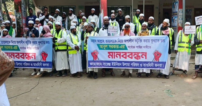 মানিকগঞ্জের সিংগাইরে বাউল শিল্পী আবুল সরকারের বিরুদ্ধে মহান আল্লাহকে নিয়ে কটূক্তি করার অভিযোগে তার সর্বোচ্চ শাস্তির দাবিতে মানববন্ধন অনুষ্ঠিত হয়েছে।