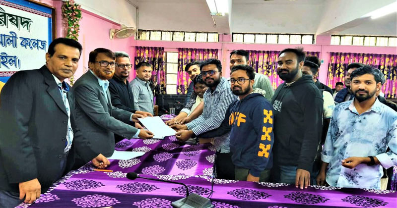 টাঙ্গাইলের সরকারি এমএম আলী কলেজের ছাত্রসংসদ নির্বাচন দ্রুত আয়োজনের দাবিতে স্মারকলিপি প্রদান করা হয়েছে। রোববার(৭ ডিসেম্বর) দুপুরে কলেজের অধ্যক্ষ প্রফেসর এসএম আসাদুজ্জামানের হাতে স্মারকলিপি তুলে দেন ওই কলেজের শিক্ষার্থীরা।