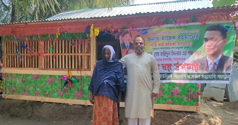 বিএনপির ভারপ্রাপ্ত চেয়ারম্যান তারেক রহমানের পক্ষ থেকে মোংলার সোনাইলতলায় একটি নতুন ঘর উপহার পেয়েছেন অসহায় নারী আনজিরা (৬৫) বেগম।