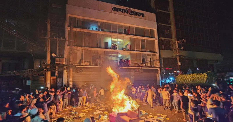প্রত্যক্ষদর্শীরা জানান, এদিন রাতে বিক্ষুব্ধ জনতা শাহবাগের দিক থেকে মিছিল নিয়ে প্রথম আলো কার্যালয়ে সামনে উপস্তিত হন। এ সময় তারা প্রথম আলো ও ভারতবিরোধী নানা স্লোগান দেন। এক পর্যায়ে কিছু লোকজন অফিসের ভেতরে প্রবেশ করে ভাঙচুর করেন। সেখানকার কাগজপত্র, কম্পিউটার নীচে ফেলে দেন। এছাড়া কার্যালয়ের সামনে অগ্নিসংযোগও করেন।