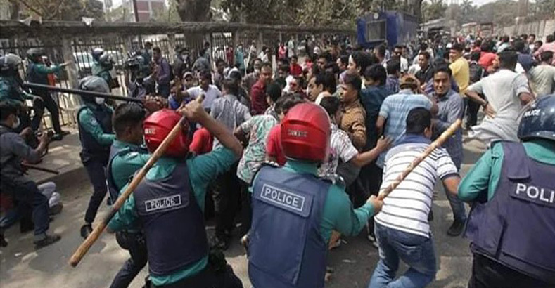 প্রত্যক্ষদর্শীরা জানায়, কর্মসূচি পালনে ছাত্রদলের বিভিন্ন পর্যায়ের নেতাকর্মীরা সকালে ১১টার দিবে জাতীয় প্রেসক্লাব ও তার আশপাশের এলাকায় জড়ো হতে থাকেন। পরে তারা বিক্ষোভ মিছিল বের করতে চাইলে তাদের বাধা দেয় পুলিশ। একপর্যায়ে ছাত্রদলের কয়েকজন নেতাকর্মী বেরিয়ে সড়কে বসে পড়েন। এ সময় পুলিশ তাদের লাঠিপেটা করে তুলে দেয়। তারপরই এলাকায় উপস্থিত ছাত্রদল ও বিএনপির নেতাকর্মীরা বিক্ষুব্ধ হয়ে ওঠেন।