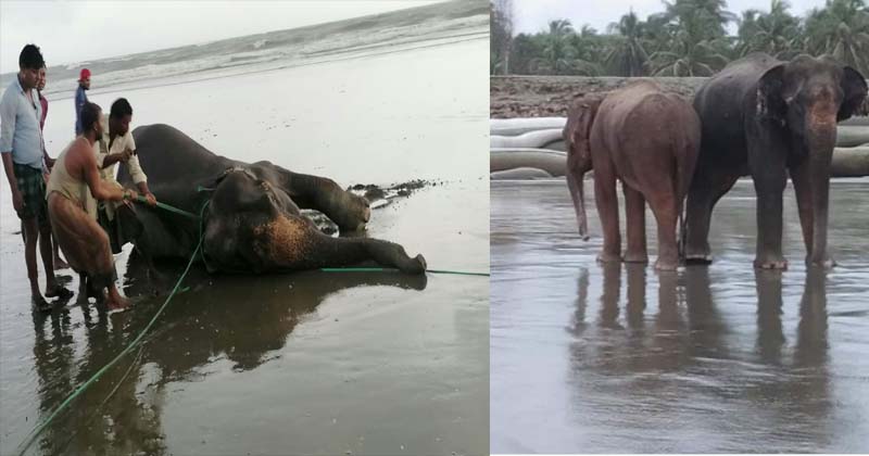 এরপর তৃতীয় দিন সাগরের স্রোতের টানে অসহায় হাতি দুটি নাফ নদীর মোহনা অতিক্রম করে বঙ্গোপসাগরে চলে যায়। হাতি দুইটি সাগরেও দুইদিন ভাসমান ছিল। দুইদিন নাফ নদী এবং দুইদিন সাগরে ভেসে থাকার পর চতুর্থ দিন সংশ্লিষ্ট কর্তৃপক্ষসহ প্রশাসন, স্থানীয় বাসিন্দা ও জেলেদের সহযোগীতায় হাতি দুইটিকে উদ্ধার করে মেরিন ড্রাইভ সংলগ্ন টেকনাফ পাহাড়ের কাছাকাছি নিয়ে যাওয়া হয়।