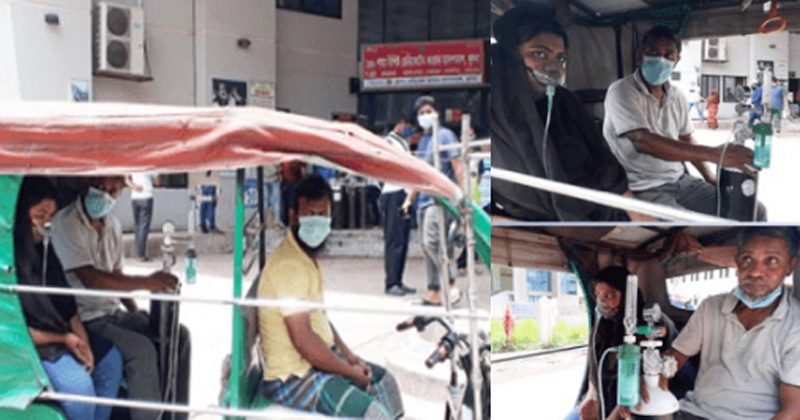 অক্সিজেনের একটি সিলিন্ডার হাতে ধরা। আর নল মুখে লাগানো। আরেকটি সিলিন্ডার পায়ের নিচে রাখা। কারণ, মুখে লাগানো অক্সিজেন কখন শেষ হয়ে যায়, এ অনিশ্চয়তার মধ্যে এবং মৃত্যু ভয়কে সঙ্গে নিয়ে সুস্থ হওয়ার আশা বুকে বেঁধে মেয়েকে নিয়ে হাসপাতাল থেকে হাসপাতাল ঘুরে বেড়িয়েছেন বাবা।