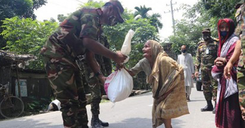 করোনাকালে কর্মহীন সাধারণ মানুষের মাঝে ত্রাণ বিতরণ করেছে সেনাবাহিনী।