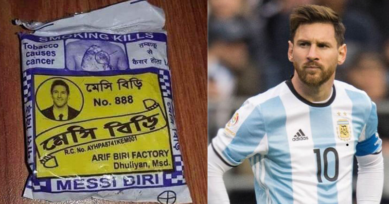 বিড়ির প্যাকেটে ক্রিশ্চিয়ানো রোনাল্ডোর মুখ ব্যবহার হয়েছিল আগেই। এবার এলেন মেসিও। মুর্শিদাবাদের ধুলিয়ান জেলার এক বিড়ি প্রস্তুতকারী সংস্থা তাদের প্যাকেটে ব্যবহার করছে মেসির নাম এবং ছবি। রোনাল্ডো বিড়িও তৈরি হয়েছিল মুর্শিদাবাদে।