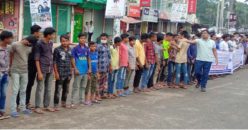 ভাণ্ডারিয়া উপজেলার পৌর বাসস্ট্যান্ডের কলেমা চত্বরে মো. রেজাউল হক রেজভি জোমাদ্দারের নেতৃত্বে অনুষ্ঠিত মানববন্ধনে বক্তব্য রাখেন মো. মাহবুব শরীফ শুভ, মেহেদী হাসান রাজু, বাবু তালুকদার, বাদশা খান, মামুন হাওলাদার, মির্জা রিপন প্রমুখ।