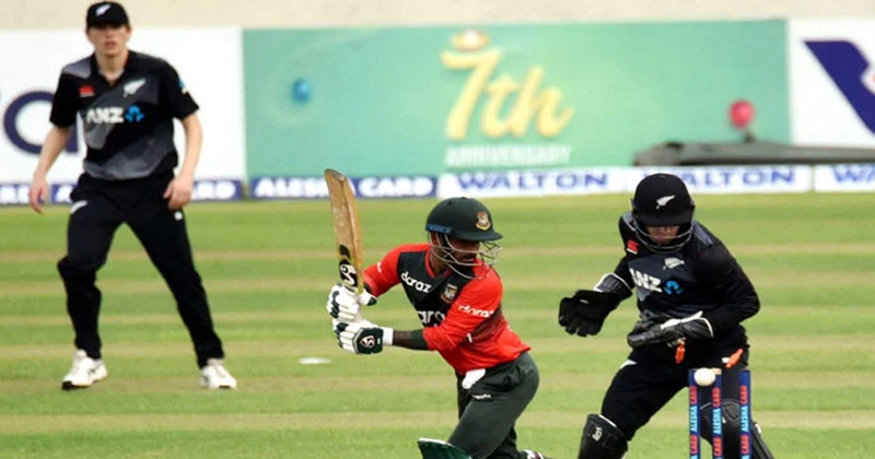 শুরতে লিটন দাস ১০ (১২) রানের ফেরেন আজাজ প্যাটেলের বলে কুগলেইনের হাতে ক্যাচ দিয়ে। সঊম্য সরকার সুযোগ পেয়েও ব্যর্থ হয়েছেন। ৯ বলে ৪ রান করে ক্যাচ দেন রবীন্দ্রর হাতে কোল ম্যাককনিকের বলে।