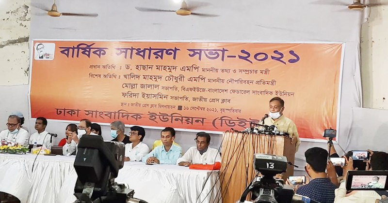 ঢাকা সাংবাদিক ইউনিয়নের (ডিইউজে) সভাপতি কুদ্দুস আফ্রাদের সভাপতিত্বে বার্ষিক সভায় বিশেষ অতিথি হিসেবে উপস্থিত ছিলেন নৌ পরিবহন প্রতিমন্ত্রী খালিদ মাহমুদ চৌধুরী। আরও উপস্থিত ছিলেন জাতীয় প্রেস ক্লাবের সাধারণ সম্পাদক ফরিদা ইয়াসমিন, ডিইউজের সাধারণ সম্পাদক সাজ্জাদ আলম খান তপু, দফতর সম্পাদক জান্নাতুল ফেরদৌস চৌধুরী সোহেল প্রমুখ।