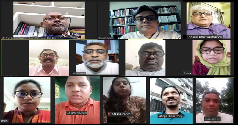 মুজিব শতবর্ষ উপলক্ষ্যে জুমে অনুষ্ঠিত আলোচনা সভায় জানিপপ-এর প্রতিষ্ঠাতা চেয়ারম্যান প্রফেসর ডক্টর মেজর নাজমুল আহসান কলিমউল্লাহ, বিএনসিসিও অনুষ্ঠানের সভাপতি হিসেবে উপস্থিত ছিলেন।
