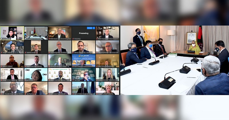 ইউএস-বাংলাদেশ বিজনেস কাউন্সিল প্রধানমন্ত্রী শেখ হাসিনার সম্মানে ‘বাংলাদেশ ফরওয়ার্ড: দ্য ফ্রন্টিয়ার ফর গ্রোথ’ শীর্ষক এক ভার্চুয়াল গোলটেবিল আয়োজন করে। বর্তমান বাসস্থান লোট নিউইয়র্ক প্যালেস থেকে ভাচ্যুয়ালি এই গোলটেবিল বৈঠকে যোগ দিয়ে প্রধানমন্ত্রী এ আহ্বান জানান।