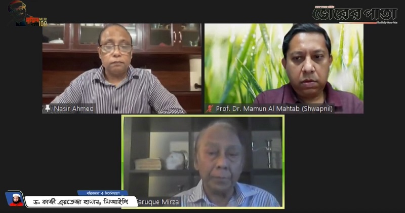দৈনিক ভোরের পাতার নিয়মিত আয়োজন ভোরের পাতা সংলাপের ৪৭২তম পর্বে শুক্রবার (২৪ সেপ্টেম্বর) এসব কথা বলেন আলোচকরা। ভোরের পাতা সম্পাদক ও প্রকাশক ড. কাজী এরতেজা হাসানের নির্দেশনা ও পরিকল্পনায় অনুষ্ঠানে আলোচক হিসেবে উপস্থিত ছিলেন- বঙ্গবন্ধু শেখ মুজিব মেডিকেল বিশ্ববিদ্যালয়ের লিভার বিভাগের চেয়ারম্যান অধ্যাপক ডা. মামুন আল মাহতাব স্বপ্নীল, বেলজিয়াম আওয়ামী লীগের উপদেষ্টা, বেলজিয়াম বঙ্গবন্ধু পরিষদের সভাপতি অধ্যাপক ড. ফারুক মির্জা। অনুষ্ঠানটি সঞ্চালনা করেন সাবেক তথ্য সচিব নাসির উদ্দিন আহমেদ।