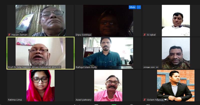 মুজিব শতবর্ষ উপলক্ষ্যে আজ শনিবার (২৫ সেপ্টেম্বর) জুমে অনুষ্ঠিত আলোচনা সভায় জানিপপ-এর প্রতিষ্ঠাতা চেয়ারম্যান প্রফেসর ডক্টর মেজর নাজমুল আহসান কলিমউল্লাহ, বিএনসিসিও অনুষ্ঠানের সভাপতি হিসেবে উপস্থিত ছিলেন।