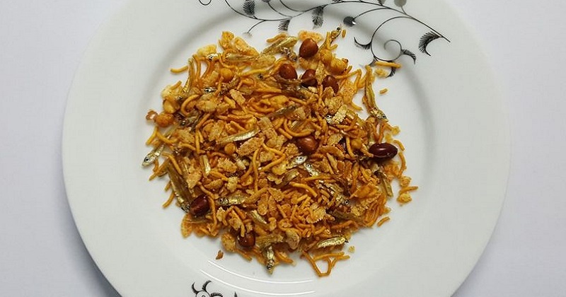 এরপর ভাজা মাছকে চানাচুরের সাথে মেশানো হয়। চানাচুরের মধ্যে এমনিতেই অনেক কিছুর মিশ্রণ থাকে। যেমন বেসনের তৈরি বুন্দিয়া, লম্বা ঝুরি, বাদাম, বুট, মটরশুঁটি, বিভিন্ন রকম ডাল ভাজা ইত্যাদি।