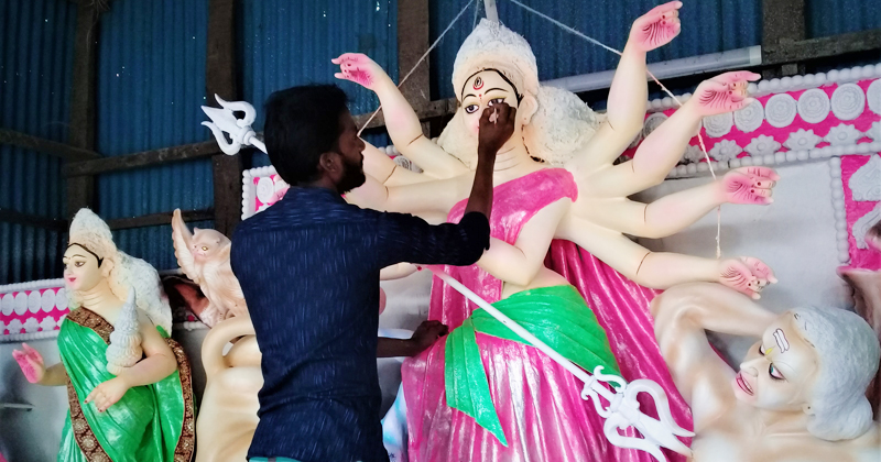 সরেজমিন ঘুরে দেখা গেছে, বিভিন্ন পূজা মন্ডপে এরই মধ্যে প্রতীমা স্থাপন করার পাশাপাশি সাজসজ্জা করা হয়েছে। রং শিল্পীর তুলির ছোঁয়ায় এসব প্রতীমার পরিপূর্ণতা ফুঁটে উঠছে।