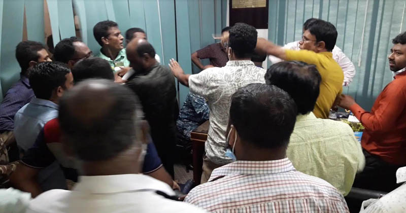 প্রথমে ফিরোজ ও সাকিব প্যানেল মনোনয়ন পত্র ক্রয় করে বন্দর ভবন থেকে চলে গেলে শেষ পর্যায় নাসির মৃধা ও পল্টু পরিষদ মনোনয়ন পত্র সংগ্রহ করতে যায়। এসময় ওই পদে মনোনয়ন কিনতে বাধা দেন ফিরোজ ও তার প্যানেলের অন্য সদস্যরা বলে অভিযোগ করেন পল্টু প্যানেলের সদস্যরা।