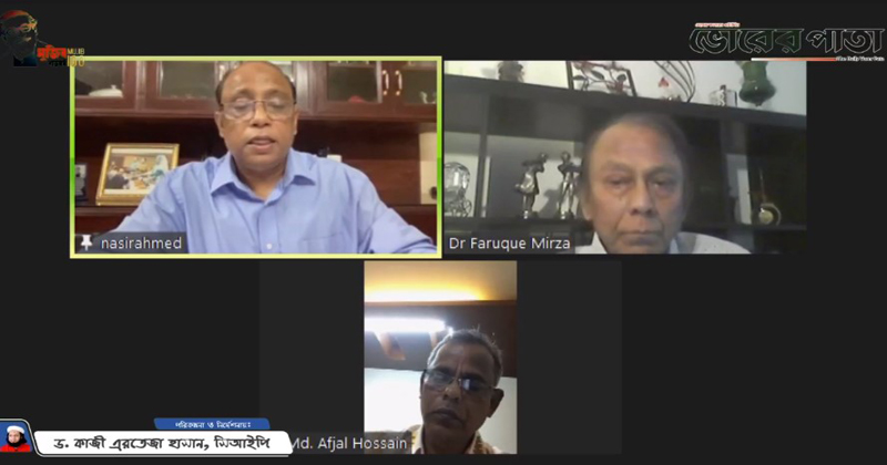 দৈনিক ভোরের পাতার নিয়মিত আয়োজন ভোরের পাতা সংলাপের ৪৮৪তম পর্বে বুধবার (০৬ অক্টোবর) এসব কথা বলেন আলোচকরা। ভোরের পাতা সম্পাদক ও প্রকাশক ড. কাজী এরতেজা হাসানের নির্দেশনা ও পরিকল্পনায় অনুষ্ঠানে আলোচক হিসেবে উপস্থিত ছিলেন- ঢাকা বিশ্ববিদ্যালয় ট্যুরিজম এন্ড হসপিটালিটি ম্যানেজমেন্ট বিভাগের অধ্যাপক ড. মো. আফজাল হোসেন, বেলজিয়াম আওয়ামী লীগের উপদেষ্টা, বেলজিয়াম বঙ্গবন্ধু পরিষদের সভাপতি অধ্যাপক ড. ফারুক মির্জা। অনুষ্ঠানটি সঞ্চালনা করেন সাবেক তথ্য সচিব নাসির উদ্দিন আহমেদ।