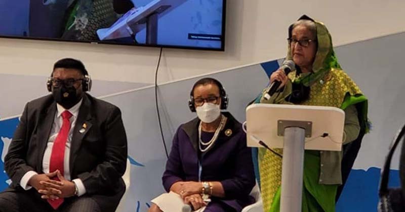 প্রধানমন্ত্রী বলেন, প্রায়ই বাংলাদেশকে জলবায়ু পরিবর্তনের বিরূপ প্রভাবের প্রথম শিকার হিসেবে উল্লেখ করা হয়। দুর্বলতা এবং সম্পদের সীমাবদ্ধতা থাকা সত্ত্বেও আমরা জলবায়ু পরিবর্তন মোকাবিলায় দৃষ্টান্তমূলক উদ্যোগ নিয়েছি।