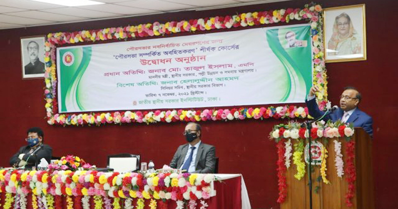 রোববার (০৭ নভেম্বর) রাজধানীর আগারগাঁওয়ে জাতীয় স্থানীয় সরকার ইন্সটিটিউট আয়োজিত পৌরসভার নবনির্বাচিত মেয়রদের জন্য ‘পৌরসভার সম্পর্কিত অবহিতকরণ’ শীর্ষক কোর্সের উদ্বোধনী অনুষ্ঠানে প্রধান অতিথির বক্তব্যে তিনি এ কথা জানান।