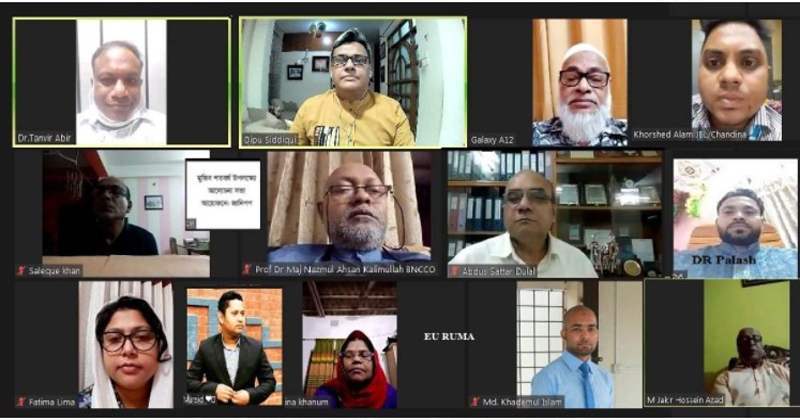 মুজিব শতবর্ষ উপলক্ষ্যে জুমে অনুষ্ঠিত আলোচনা সভায় আজ রবিবার (০৭ নভেম্বর) জানিপপ-এর প্রতিষ্ঠাতা চেয়ারম্যান প্রফেসর ডক্টর মেজর নাজমুল আহসান কলিমউল্লাহ, বিএনসিসিও অনুষ্ঠানের সভাপতি হিসেবে সংযুক্ত ছিলেন। সভাপতির বক্তব্যে প্রফেসর ডক্টর নাজমুল আহসান কলিমউল্লাহ বলেন, বঙ্গবন্ধুর অনুসন্ধিৎসু মন ছিলো।
