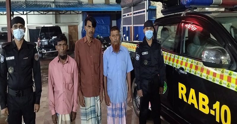 গ্রেফতারকৃত ব্যক্তিদের নাম- মোঃ আইয়ুব (৩৫), আব্দুস শুক্কুর (৫৪) ও মোঃ আমির হোসেন (৬৫)।