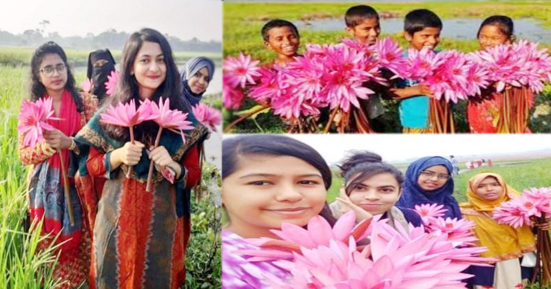 কোনো প্রকার চাষ ছাড়াই জন্মেছে লাল শাপলাগুলো। গোটা বিলের বুক জুড়ে এখন লাল শাপলার অপরূপ দৃশ্য দেখা যায়।