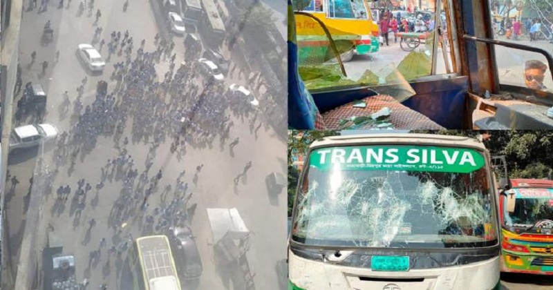 সাইন্সল্যাবে হাফ পাসের দাবিতে গাড়ি ভাঙচুর, উত্তেজিত শিক্ষার্থীরা