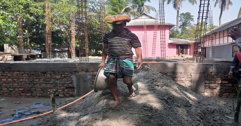 সরেজমিনে গিয়ে দেখা যায়, নির্মাণাধীন ভবনের ফ্লোরে মাটি ভরাটের কাজ চলছে। সাংবাদিকদের উপস্থিত টের পেয়ে কয়েকজন শ্রমিক দ্রæত সটকে পরে। নির্মাণাধীন ওই ভবনের পশ্চিম পাশে একটি লাল নিশান হেলানো অবস্থায় দেখতে পাওয়া যায়।