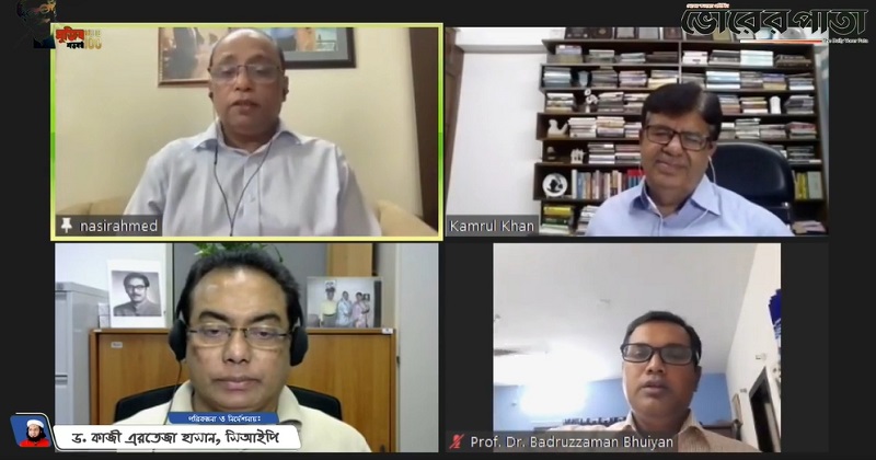 অধ্যাপক ডা. কামরুল হাসান খান বলেন, আজকে ভোরের পাতা সংলাপে আমার সাথে যেসব অতিথি সংযুক্ত আছেন তাদেরসহ যারা এই অনুষ্ঠানটি দেখছেন তাদের সবাইকে শুভেচ্ছা জানাই। আমরা মুজিববর্ষ পালন করছি একদিকে, অন্যদিকে আমরা স্বাধীনতার সুবর্ণ জয়ন্তী পালন করছি। আজকের এই দিনে আমি আমার বক্তব্যের শুরুতে গভীর শ্রদ্ধা জানাই সর্বকালের সর্বশ্রেষ্ঠ বাঙালি বঙ্গবন্ধু শেখ মুজিবুর রহমানকে, গভীর শ্রদ্ধার সঙ্গে স্মরণ করছি ১৫ আগস্টের সেই কালরাতে তাঁর পরিবারের যেসব সদস্যরা শাহাদাতবরণ করেছিলেন। গভীর শ্রদ্ধার সঙ্গে স্মরণ করছি ৩০ লাখ শহীদ ও ২ লাখ ইজ্জতহারা মা-বোনদের। গভীরভাবে স্মরণ করি জাতীয় ৪ নেতাকে। আজকে গোটা বিশ্বে রাজনীতি দিন দিন জটিল হয়ে যাচ্ছে। যেমন হচ্ছে এশিয়ার রাজনীতি ঠিক দক্ষিণ এশিয়ার রাজনীতিও জটিল হয়ে যাচ্ছে। সেখানে কূটনৈতিক সফলতা অর্জন করা খুব কঠিন। আমাদের ব-দ্বীপটি এমন একটা জায়গায় অবস্থিত যেখানে আমরা ভারত ও চীনের মাঝামাঝি থাকায় দু’ দেশের সাথে সুসম্পর্ক রাখাটা আমাদের জন্য কঠিন হয়ে পড়ে। ভারত আমাদের দীর্ঘ কালের বন্ধু এবং সত্যিকার অর্থেই আমাদের পূর্বপ্রজন্ম ভারত থেকেই এসেছে। দীর্ঘকাল ধরেই আমাদের সাথে ভারতে একটা সম্পর্ক রয়েছে। আরেকদিকে চায়না হচ্ছে আমাদের অন্যতম ডেভেলপমেন্ট পার্টনার। চায়নার সঙ্গে আমাদের যে সম্পর্কটা হচ্ছে সেটা হলো আমাদের দেশে যে ডেভেলপমেন্ট হচ্ছে সেটা তারা অনেক দিন ধরেই করে আসছে। এই দুই দেশের সাথে সুসম্পর্কটা বজায় রাখা অনেক কঠিন কাজ তারপরেও আমাদের জননেত্রী প্রধানমন্ত্রী শেখ হাসিনা অত্যন্ত দক্ষতা ও মেধার সাথে করে আসছে। শুধু দক্ষিণ এশিয়া নয়, বিশ্বে অনন্য নেতায় আবির্ভূত হয়েছেন শেখ হাসিনা। যিনি তার পরিবারের সবাইকে হারিয়ে এভাবে মানসিকভাবে সুস্থ থেকে দেশের জন্য সমস্ত মেধা দিয়ে এগিয়ে নিয়ে চলা, এটা কিন্তু খুবই কঠিন কাজ। তবুও তিনি এই কঠিন কাজটি সম্পন্ন করে আসছেন দীর্ঘদিন ধরে। এইরকম একজন নেতা পৃথিবীর অন্য কোথাও আর নেই। এইরকম ট্রমাটাইজড মানুষ যার জীবনের প্রতি মুহূর্তে হুমকির সম্মুখীন হয়েছে তিনি কিভাবে এই কাজগুলো করে আসছেন তা আজ বিশ্ব নেতাদের ভাবিয়ে তুলছে। সে হিসবে আজকে তার প্রভাবের কারণে আমাদের সাথে উন্নয়ন সহযোগীরা আসছে। সবচেয়ে বড় কথাটা হচ্ছে আল্লাহ তাঁকে কি দিয়েছে যে তিনি ২৪ ঘণ্টা সব কিছু নিজের একাগ্রতা দিয়ে মনিটর করছে। আমি দোয়া করি উনি দীর্ঘজীবী হোক, বঙ্গবন্ধুর সোনার বাংলা বাস্তবায়ন যেন তার কন্যার হাতেই হয়, সেটা আমরা সব সময় আশা করি।