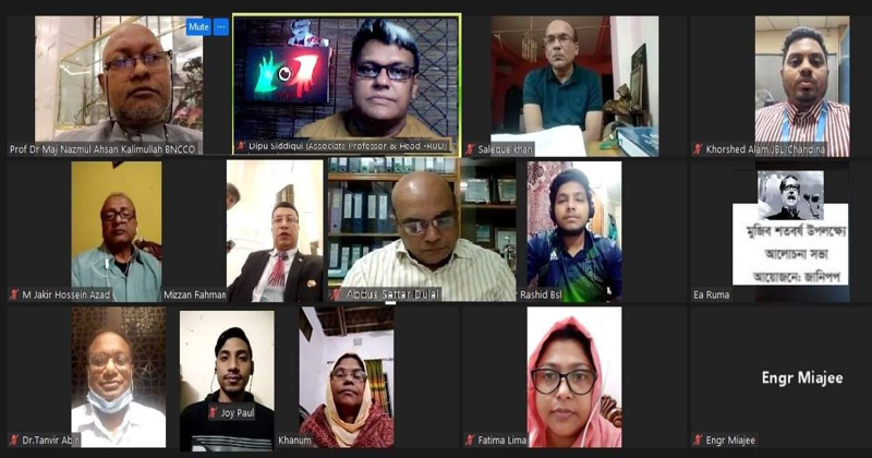 মুজিব শতবর্ষ উপলক্ষ্যে আজ বুধবার (২৪ নভেম্বর) জানিপপ কর্তৃক আয়োজিত বর্ষকালব্যপী জুম ওয়েবিনারে আলোচনা সভার ১১৮তম পর্ব অনুষ্ঠিত হয়।