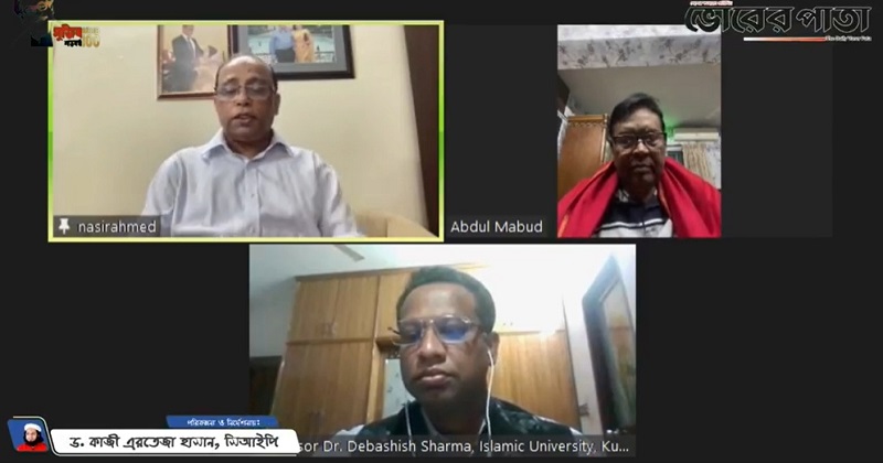 দৈনিক ভোরের পাতার নিয়মিত আয়োজন ভোরের পাতা সংলাপের ৫৩৭তম পর্বে রোববার (২৮ নভেম্বর) এসব কথা বলেন আলোচকরা। ভোরের পাতা সম্পাদক ও প্রকাশক ড. কাজী এরতেজা হাসানের নির্দেশনা ও পরিকল্পনায় অনুষ্ঠানে আলোচক হিসেবে উপস্থিত ছিলেন- সেক্টর কমান্ডার ফোরামের যুগ্ম মহাসচিব বীর মুক্তিযোদ্ধা মো. আব্দুল মাবুদ, কুষ্টিয়া ইসলামী বিশ্ববিদ্যালয়ে অর্থনীতি বিভাগের চেয়ারম্যান অধ্যাপক ড. দেবাশীষ শর্মা। অনুষ্ঠানটি সঞ্চালনা করেন সাবেক তথ্য সচিব নাসির উদ্দিন আহমেদ।