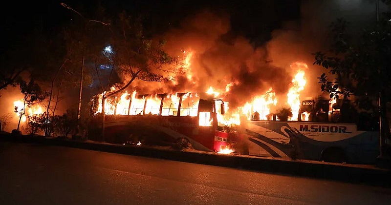 ঘটনাস্থলে থাকা ফায়ার সার্ভিসের উপসহকারী পরিচালক হাফিজুর রহমান বলেন, 'আমরা ঘটনাস্থলে এসে ১২টি গাড়ি বিধ্বস্ত অবস্থায় পেয়েছি। এর মধ্যে চারটি গাড়িতে ভাঙচুর করা হয়েছে ও বাকি ৮টি গাড়িতে আগুন ধরিয়ে দেওয়া হয়। পরে ঘটনাস্থলে আমাদের তিনটি ইউনিট কাজ করে আটটি গাড়িতে লাগা আগুন নিয়ন্ত্রণে আনে এবং নির্বাপণ করে।' আগুনে বাসগুলো সম্পূর্ণ পুড়ে গেছে বলেও জানান তিনি।